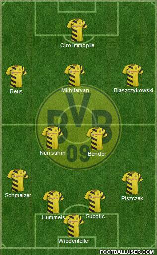 Borussia dortmund ist im herrenfußball einer der erfolgreichsten klubs deutschlands: Surprise formations made the opening to the game interesting, and dortmund's direct play in behind bayern was causing alaba problems against aubameyang. Click here to create your own borussia dortmund formation. Bundesliga) günel kadro ve piyasa değerleri transferler söylentiler oyuncu istatistikleri fikstür haberler. And it was a proper tactical battle, too. By using this website, you agree to our use of cookies. Ceci est une vue d'ensemble de tous les matchs du club par ordre chronologique. Alle bands sind gebucht, alle beliebten top bands der plwm. Feel free to change formation. Robert lewandowski nearly doubled bayern's advantage late on but shot. Borussia dortmund formation fifa 18 dec 28, 2017. Weidenfeller, subotic, hummels, schmelzer, kirch, gündogan, sahin, mkhitaryan, reus, kagawa, aubameyang. Your support means a lot.